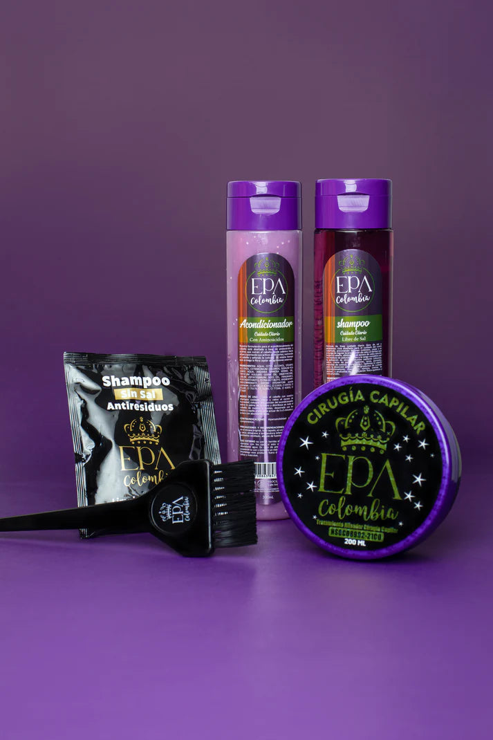 Incluye: 1 sachet Anti-Residuos + 1 shampoo x 300ml + 1 acondicionador x 300ml + 1 porción x 200 ml de Tratamiento alisador (Cirugía) + 1 brocha de aplicación.